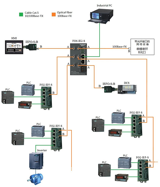 6光2電工業(yè)以太網(wǎng)光纖交換機。6個百兆單纖A光口,2個100/10Mbps自適應網(wǎng)口,光纖工作波長Tx1310nm/Rx1550nm,符合IEEE802.3u,10/100Base-TX和100Base-FX工業(yè)以太網(wǎng)標準,電源端口-網(wǎng)口-光纖端口全部隔離,ST光纖接頭,適用光纖:單模9/125、10/125、8.3/125um,最大傳輸距離20km。DIN35mm標準導軌安裝,工作溫度-20~+75℃,9~40VDC寬電壓供電。適用于各種工業(yè)以太網(wǎng),無閃斷。