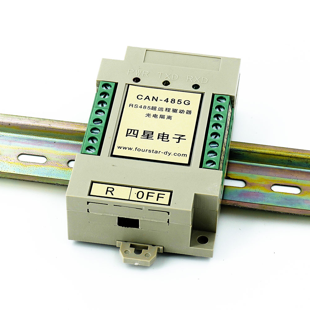 RS485/RS422通用光隔離超遠程驅(qū)動器,采用不改變RS485協(xié)議(軟件)的CAN驅(qū)動器,只需二根線即可將RS485/RS422通訊距離延長10km(4800bps時)、5km(9600bps時),支持110個RS485節(jié)點組網(wǎng),解決了野外使用中繼器加電源的麻煩,外接5V電源。外形為導軌安裝的工業(yè)結(jié)構(gòu),帶指示燈。