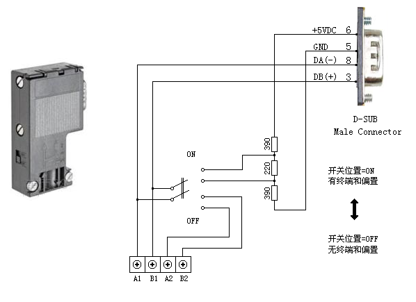 圖2-7是西門子總線連接器原理圖,圖2-8是四星電子有源終端電阻原理圖。