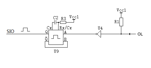 如圖2-4和圖2-5所示,許多IO-Link從站設(shè)備初始上電時(shí)為SIO狀態(tài),在IO-Link中繼器長(zhǎng)線收發(fā)器中如何按照主機(jī)的命令將其轉(zhuǎn)換成IO-Link通訊狀態(tài),喚醒脈沖產(chǎn)生電路和喚醒脈沖接收電路可以實(shí)現(xiàn)這樣的轉(zhuǎn)換:當(dāng)主機(jī)發(fā)出喚醒命令時(shí),其過流事件會(huì)在A模塊的U1的OL引腳產(chǎn)生一個(gè)低電平信號(hào),該信號(hào)被非門電路U4反相后輸出給單穩(wěn)態(tài)電路U9,由U9和R3、C2產(chǎn)生一個(gè)短暫的喚醒脈沖,經(jīng)接口CN2、長(zhǎng)線電纜、輸出給B模塊接口CN3,經(jīng)U18反相后輸入給或門電路U12,控制收發(fā)器U10的使能控制引腳EN為高電平,從而將主機(jī)的喚醒脈沖發(fā)送給連接在CN4上的IO-Link從站設(shè)備,將其喚醒轉(zhuǎn)換成IO-Link通訊模式。