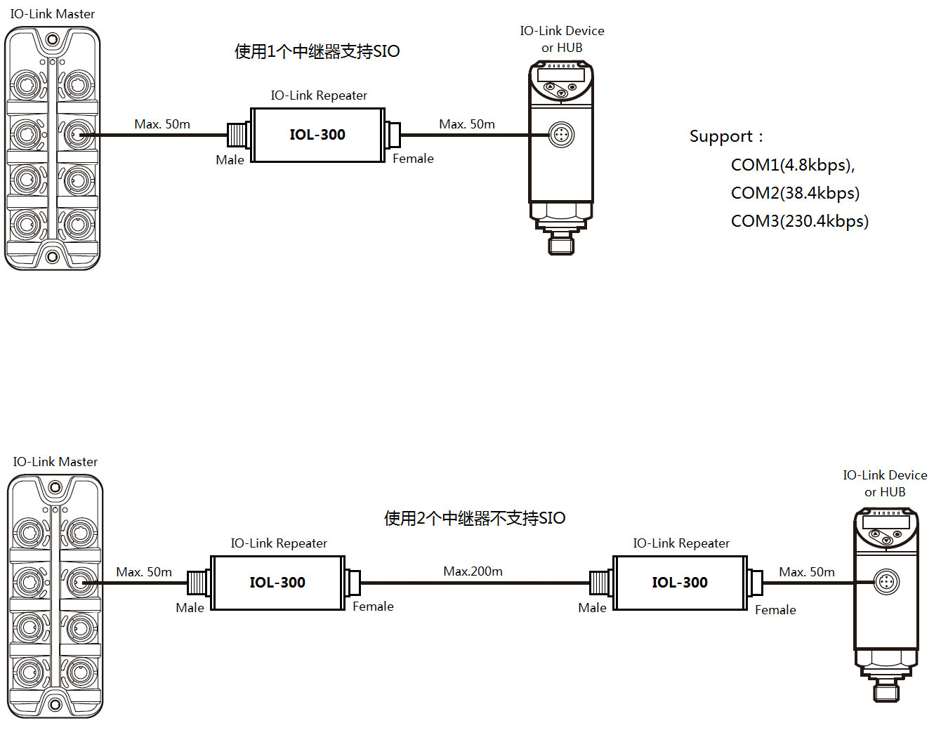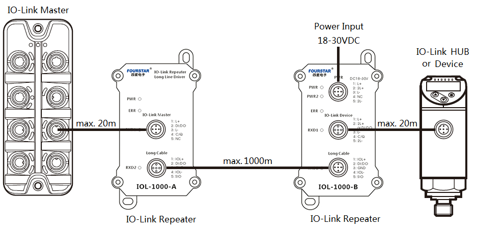 3、IO-Link中繼器長(zhǎng)線收發(fā)器連接拓?fù)?/span>