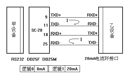 RS232/TTY(20mA電流環(huán))轉(zhuǎn)換器,全雙工,最高速率9600bps,無需供電。