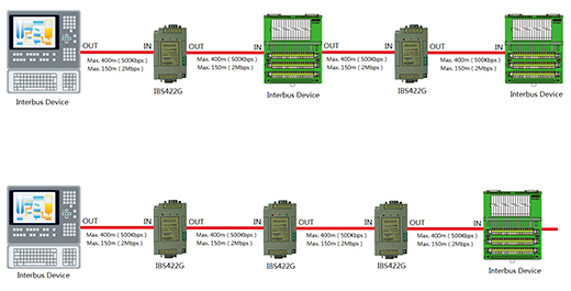 Interbus中繼器,延長(zhǎng)兩個(gè)站點(diǎn)之間的通訊距離。