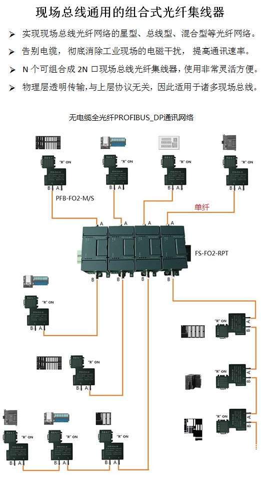 組合式現(xiàn)場總線光纖集線器,單模單纖。